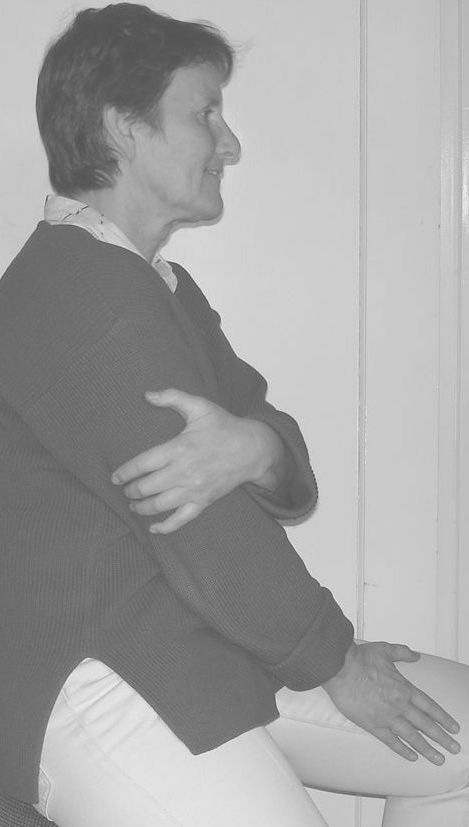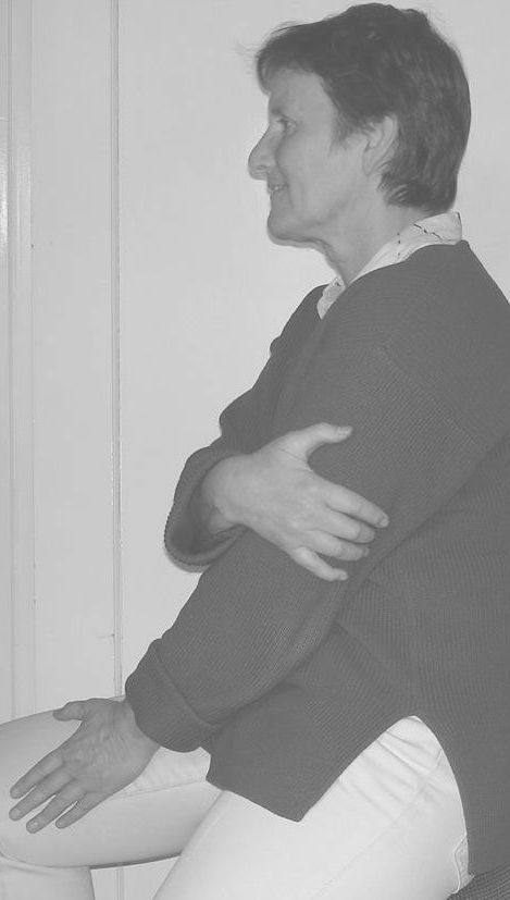 2. Legen Sie die rechte Hand entspannt auf den linken Oberarm (hinten ca. eine Handbreite über